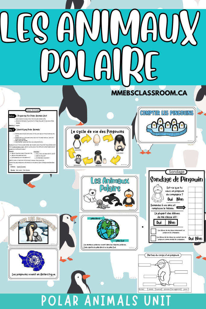 The winter/Hiver unit that we started in December was coming to an end and I wasn’t ready start Carnival just yet, so what were we going to do in January? We already have our Animals Unit scheduled for May/June, but that was only going to cover Pets and Farm animals. I decided to do polar animals and explore Penguins this year. Next year we can revisit Polar Animals and focus on Polar Bears, or something else that class decides.